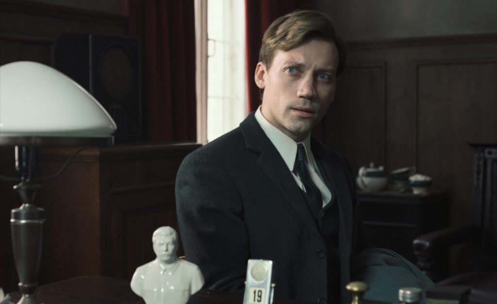 Lorsque le jeune Alexander Kornev, fraîchement nommé procureur, se présente aux portes de la prison, aucun besoin de nous préciser que c’est un homme intègre : ça se voit sur son visage. On ne dit jamais assez à quel point le cinéma est un révélateur de ce dicton bizarre, qu’on aimerait croire erroné : « on a le physique de nos idées ». Un cinéaste comme Rohmer a beaucoup joué de cela ; il avait le flair pour repérer des acteur·ice·s dont les caractéristiques physiques correspondaient exactement aux traits moraux brossés dans le scénario (ou s’y opposaient avec la même exactitude). Ce n’est pas donné à tout le monde. Dans Deux Procureurs, Alexandre Kouznetsov, qui joue Alexander, a quelque chose d’une droiture marbrée, au diapason de celle du film, comme une retenue du corps qui n’empêche pas le perçant du regard. Il apparaît souvent de face ; il bouge peu, ni ses mains ni ses yeux ni sa bouche quand il parle. C’est une sculpture sur pattes.