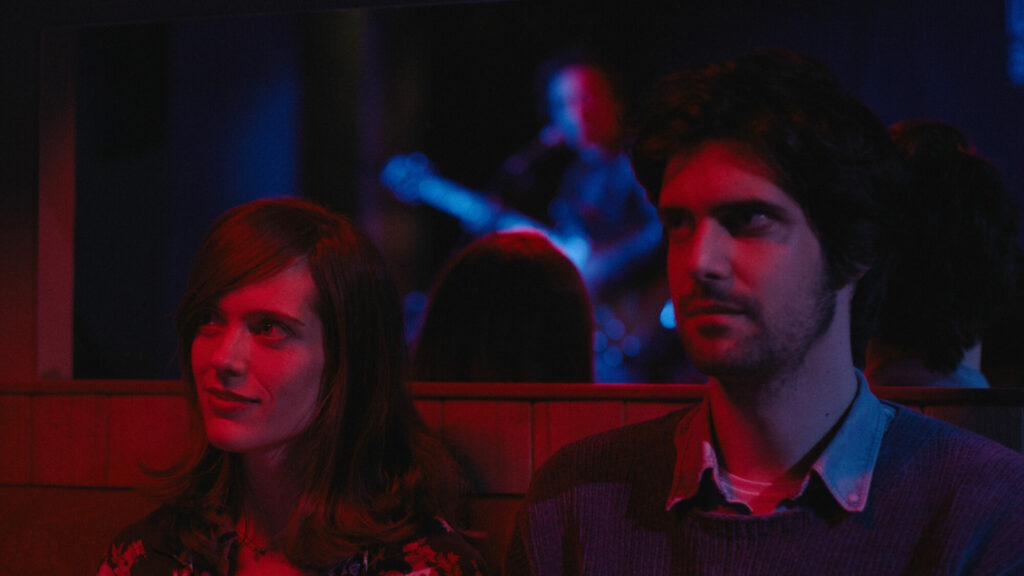 L’originalité désarçonnante de ce film se situe dans l’ironie dramatique qu’il déploie au fur et à mesure que son récit avance – ou plutôt, régresse. Jusqu’au premier tiers du récit, on pouvait encore douter : le charme de la nuit madrilène pouvait faire mouche, mais était peut-être un peu gentillet. Puis il y a cette longue scène de danse, qui marque la fin de leur nuit, et, en quelque sorte, la fin de l’intrigue : à partir de là, nous n’avons plus rien à apprendre. Olmo (Francesco Carril) laisse Manuela (Itsaso Arana) au petit matin, et rentre chez lui, auprès de Carla (Aura Garrido), sa petite amie, avec qui il vient de s’installer dans un appartement, encore rempli de cartons (on se souvient que, plus tôt, au détour d’une conversation, Olmo racontait être en plein déménagement : déjà il n’y a plus de surprise). Il lui raconte sa soirée, sans mensonge ni honte : ils ont dansé, bu des verres, parlé de leur amour de jeunesse. Le film de jalousie est immédiatement dépassé, comme si le personnage était trop fatigué pour relancer le drame, ce que la suite confirmera.