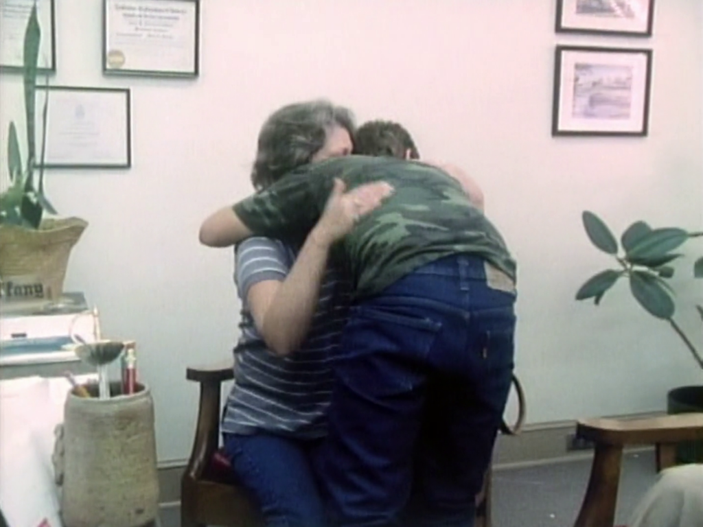 Tout est situation de communication : Wiseman ne met en scène que des citoyens qui tentent de dialoguer entre eux, dans des discussions parfois totalement cryptées. La communication est un langage qui s’apprend, s’intériorise, pour devenir cette arme de défense tant attendue – vis-à-vis des autres mais aussi de soi. La tétralogie Blind and Deaf (1986), sur le campus de l’Alabama Institute for Deaf and Blind à Talladega, constitue la preuve la plus émouvante de cette nécessité démocratique. En construisant ses films au fil des générations (de la petite enfance à l’entrée dans l’âge adulte), Wiseman restitue la construction d’un regard et d’une écoute, pour ceux qui en sont dépourvus. Si la démonstration est littérale, et que de nombreuses séquences montrent des apprentissages cognitifs concrets (lire le braille ; toucher sa gorge afin de comprendre la formation des sons), elle revient toujours à la formation d’un individu en tant que citoyen. Dans la plus émouvante séquence de Blind, le jeune Peter est convoqué dans le bureau du directeur, M. Tiffany, suite à une crise où il a menacé de se suicider. Entre lui et sa mère, venue de loin, le docteur Meacham, qui insiste sur un point essentiel : « Vous ne communiquez pas très bien ». Car s’il s’agit de lui faire arrêter ces techniques de chantage, tout en s’assurant qu’il reçoit l’attention dont il a besoin, le plus important réside dans la verbalisation de ce qu’il ressent (parler de colère et non de détestation) et surtout dans son adresse à sa mère. « Pourquoi tu ne regardes pas ta maman ? », « Regarde-la », autant d’aides pour permettre la traduction du message de l’un à l’autre (la mère parlant assez sommairement la langue des signes), jusqu’à ce que le garçon soit incité à lui dire qu’il l’aime (dans l’évanescence des mots prononcés par une personne malentendante) et à prendre sa mère dans ses bras. Wiseman prend une trentaine de minutes pour s’assurer que Peter devient d’une certaine façon adulte, apprend à communiquer mais aussi à se regarder dans un miroir, comme lui demande M. Tiffany, insistant pour voir son sourire et ses dents. Une situation avec un intermédiaire qui rappelle ce plan dans Hospital, où une vieille dame atteinte de surdité était introduite par un gros plan de son appareil auditif (un micro en forme de gros baladeur), point de contact entre elle et le corps médical.