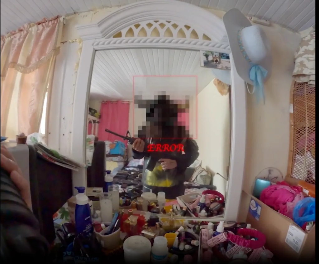 Mais au-delà de son dispositif perceptif, le film ne peut être dissocié des tensions politiques qu’il condense. Car si Baby Invasion explore l’effacement du regard humain, il met aussi en scène, sans la commenter directement, la manière dont la violence circule dans nos environnements numériques. L’utilisation répétée des masques de bébés, créés par IA et portés lors de braquages ou d’exactions en direct sur Twitch, renvoie à une imagerie paradoxale où l’innocence factice masque la brutalité réelle. Ce masque synthétique agit comme un double écran : il dissimule et dévoile à la fois la mécanique d’une violence performée et l’effacement de toute humanité derrière des avatars numériques. Si l’on peut y lire des échos aux fascismes numériques ou aux formes contemporaines de violence médiatisée, ces motifs sont présents comme des données brutes, déconnectées de toute médiation humaine : l’expérience est abstraite, distante et souvent démoralisante. La séquestration et la torture de la famille rappellent la circulation virale des vidéos gores en ligne, visionnées non pour comprendre ou témoigner, mais pour être consommées comme un flux de chocs visuels. Des images qui, sorties de tout contexte, finissent par anesthésier autant que révulser, produisant un rapport ambigu où la sidération se mêle à l’indifférence.
