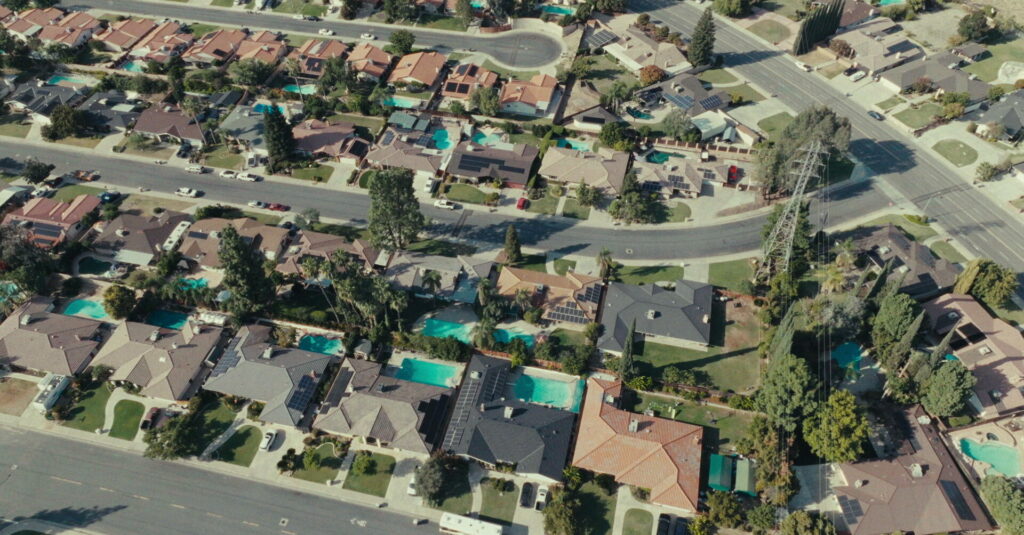 De l’autre côté de la route 99, les murs des gated communities qui fleurissent en Floride et en Californie, où de petites communautés de riches propriétaires vivent, surveillées par des gardes, respectant des règles de conduite et une politesse de façade, dessinent une bulle close où tout est fait pour être protégé du reste du monde. Pelouses parfaites, piscines azur, villas à l’identique : tout est propre, impersonnel, contrôlé. Une homogénéité sociale – et raciale – frappante. À quoi rêvent les adolescent·es qui grandissent dans cette bulle asphyxiante ? Que se passe-t-il quand, à l’intérieur des formes parfaites, quelque chose se met à déborder ?