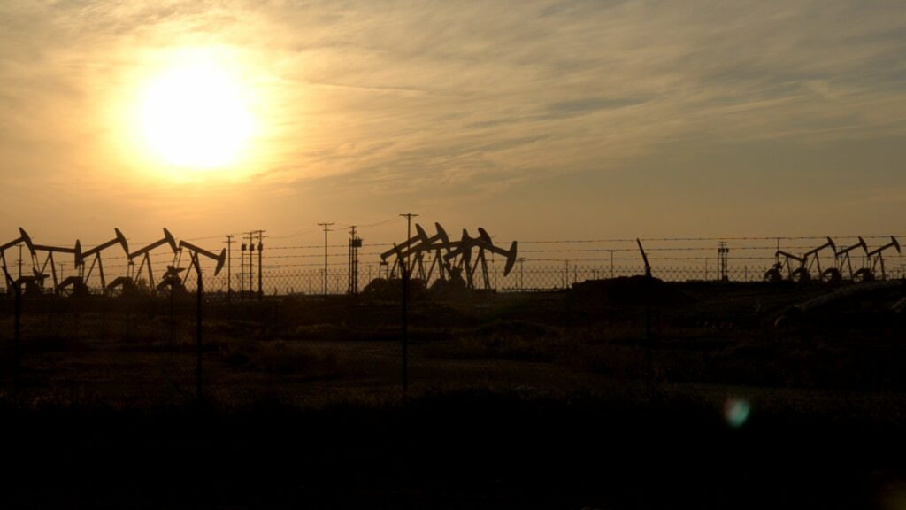 Nous roulons jusqu’à ce paysage d’apocalypse. Au pied des machines, l’odeur du pétrole envahit nos narines. Les sons mécaniques, litanie de ferraille, accompagnent leur mouvement pendulaire. Peu à peu, nous n’y voyons plus des pompes mais des faucheuses qui martèlent le sol, contaminent l’eau, abîment les corps, scandent, tel un métronome sinistre, la marche implacable d’une machine capitaliste qui broie la ville dans l’invisible.