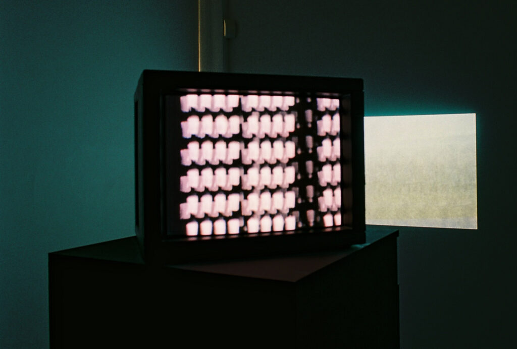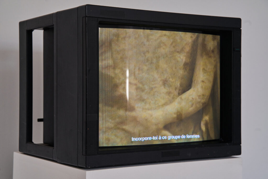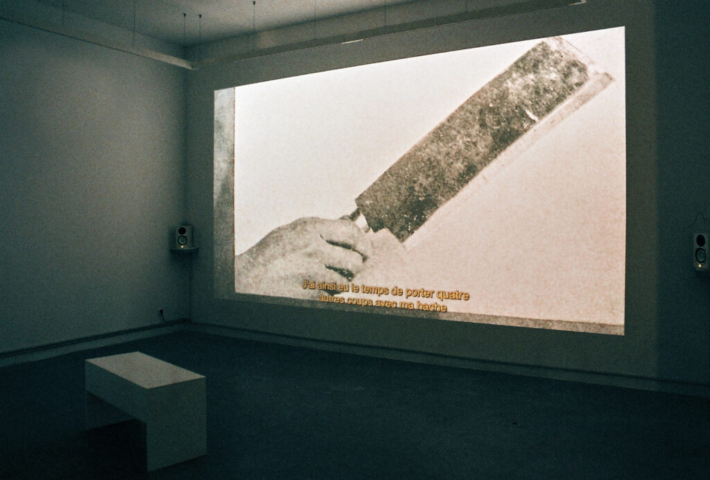C’est par ces mots que la narratrice d’Exhibition (Mary Helena Clark) résume le concept de « trou analogique » (analog hole) : l’impossibilité d’empêcher la reproduction, le piratage ou le détournement d’un contenu, à moins d’en empêcher la vision – et donc l’existence. Cette notion expose très clairement la forme de vulnérabilité des images et des textes (d’autant plus criante à l’ère des modèles génératifs). Mais le trou analogique met surtout en exergue le rôle clé dans l’acte de voir, et l’émergence d’un territoire tiers, propre à cet acte : ce champ de la relation à l’objet de notre regard ou de notre attention. Cette zone d’intimité avec les œuvres est au cœur de la démarche curatoriale de Manuel d’Exposition, dont la priorité n’est pas d’articuler un propos général et absolu, mais au contraire d’inviter à le dessiner, à l’induire, le suggérer, à le laisser paraître, en s’attardant avant tout sur cette zone de frottement et de perception avec la complexité et la richesse des œuvres – servant dès lors chaque pièce aussi bien que possible, dans son espace et sa configuration propre. Une démarche où l’autonomie de l’œuvre filmique (c’est-à-dire sa loi propre, sa bonne monstration) n’est pas simplement assurée par des conditions matérielles ou techniques à garantir (vision commune du « média » filmique : un écran, des haut-parleurs, et meilleure sera la technique, meilleur sera sa monstration) mais où cette autonomie est en grande partie l’objet de conditions poétiques à garantir.