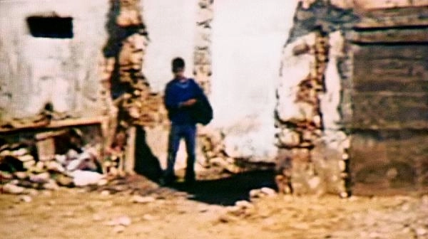 Depuis que j’ai découvert Recollection, je n’ai cessé de revenir à une scène précise, que je tiens pour la matrice du film (quoi qu’à vrai dire je n’en sache rien) : alors que le cadreur inconnu promène sa caméra dans Jaffa, un enfant apparaît entre deux pans de mur, qui semble se tenir au bord de l’image. Il ne s’avance pas. Il attend et observe l’inconnu qui est en train de le filmer. Le face-à-face flotte quelques secondes. Puis un mouvement de caméra parasite fait sortir l’enfant du cadre. Lorsque la caméra revient sur l’interstice entre les deux pans de mur, il a disparu. Aljafari mentionne le fait qu’il a assisté au tournage de Dela Force en 1986 à Jaffa et (qui sait ?), il aurait bien pu être l’un de ces figurants qui l’attendent. Quelque chose d’étrange passe dans ce face-à-face : le voyageur s’arrête devant l’enfant comme devant sa propre ombre, projetée dans un couloir du temps.