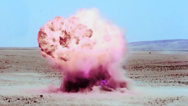 Jules Conchy : Parmi toutes les manières d’aborder l’œuvre de Kamal Aljafari, j’aimerais commencer par une qualité inattendue : son sens de l’humour. Fabriqué en marge de la production de A Fidai Film, en 2023, Paradiso XXXI, 108 est un court-métrage composé d’images de propagande que l’Armée d’Occupation Israélienne tourne dans le désert dans les années 1960 et 1970. L’opération mystérieuse qui donne son titre au film (parodie des noms bibliques qui ornent pompeusement les guerres coloniales d’Israël) réunit à elle seule tout l’édifice de la guerre moderne : chars d’assaut filmés en grand angle, inserts sur des outils de calculs balistiques, ballons-sondes en contre-plongée et escadres aériennes. Les codes visuels du film de guerre font partie intégrante de cet arsenal, sauf qu’ils semblent cette fois tourner à vide : le contre-champ, scruté à répétition à travers les jumelles des soldats, ne révèle qu’une vaste étendue de dunes de sable balayées par le vent. Plutôt que d’organiser un face-à-face entre deux espaces et deux camps, le montage disperse les projectiles et réduit la guerre à une pure dépense narcissique, un numéro de pyrotechnie sans spectateurices – une guerre contre les nuages et le vent. Aux deux tiers du film, les projectiles se retournent contre les attaquants et les chars explosent sous l’effet de leurs propres salves.