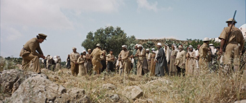 Le terrain du film apparaît peu à peu miné. Ce drame historique franco-britanno-qataro-saoudo-palestinien est un world pudding, produit par des pontes du cinéma contemporain (BBC, mk2, Doha Film Institute), qui semble remplir un cahier des charges didactique déroulant une série d’événements sans se risquer à autre chose. Rares dans ce film sont les images de résistance : si elle motive le sujet du film, la révolte arabe de 1936 constitue plus une toile de fond, une donnée historique, qu’un véritable enjeu narratif. Par exemple, le personnage principal, Yusuf, d’abord domestique au service de Khuloud et Abu, quitte Jérusalem pour rejoindre le maquis et disparaître du film jusqu’à un massacre final, commis par les Britanniques, où il se sacrifie d’une mort très hollywoodienne pour sauver une enfant. Seule véritable scène d’action du film, cette séquence héroïque n’existe que parce qu’elle est initiée par un massacre, plaçant son personnage en légitime défense. Bien entendu, le film s’oppose au récit officiel sur la révolte de 1936, sur la base duquel le régime israélien et l’Occident ont légitimé la Nakba, mais cet esprit de « débunkage » se fait sans une véritable mise en scène de la résistance.