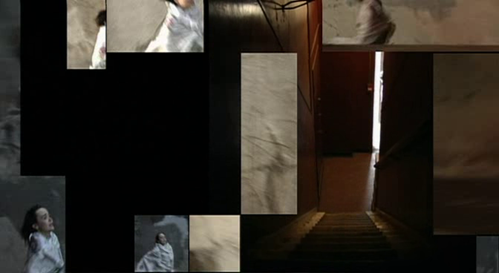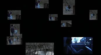 Suit, une nouvelle séquence où sont réunis – au sein d’un montage en mosaïque spatiotemporelle – des plans de Tracey dans le bus (le drap dont elle est couverte atteste qu’il s’agit d’une séquence postérieure à la tentative de viol) et des images tant de la jeune fille que de Sonny arrivant près du pont au-dessus de la rivière. Une telle séquence ne peut être reliée à aucune spatiotemporalité. Pure construction graphique, elle est un indécidable sur le plan spatial puisqu’aucun groupe de fenêtres n’occupe de place dominante et ne peut prétendre constituer l’ancrage spatiotemporel de la séquence. En ce sens, cette séquence est typique de la catégorie empuzzlement (ambiguity regarding reality and space) décrite parSabine Schlickers et Vera Toro.